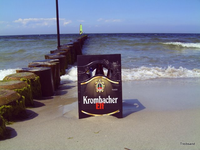 Fällt er nach hinten, dann stützen ihn die anderen beiden und fällt nach vorn, muß er sehen wie er klar kommt. Aber ich bin sicher, das Sixerpack Bier kommt wie die Jungs wohlbehalten am Strand von Markgrafenheide an.